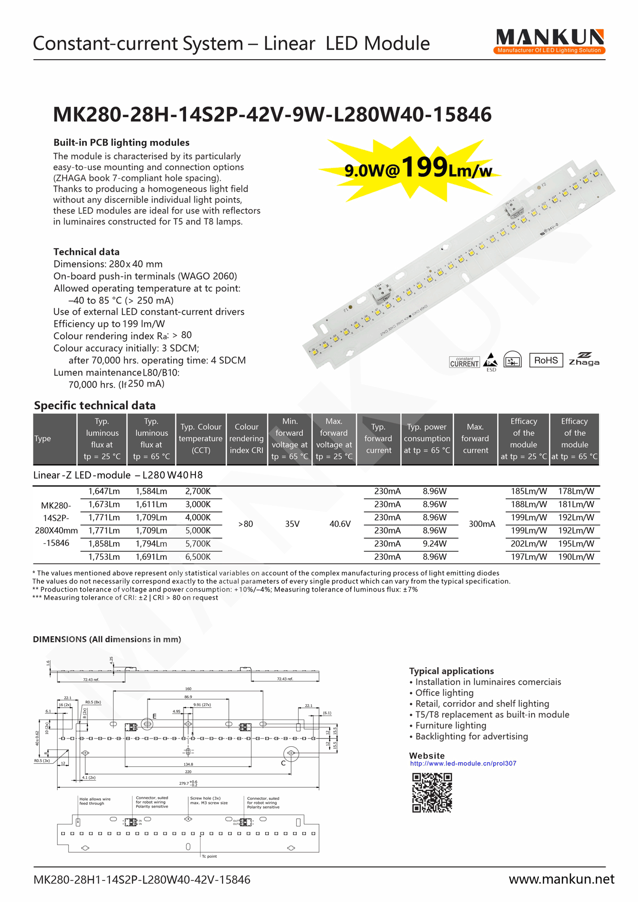 _ Module Efficacy 199 lm/W at Irated and tp = 25 ¡ãC