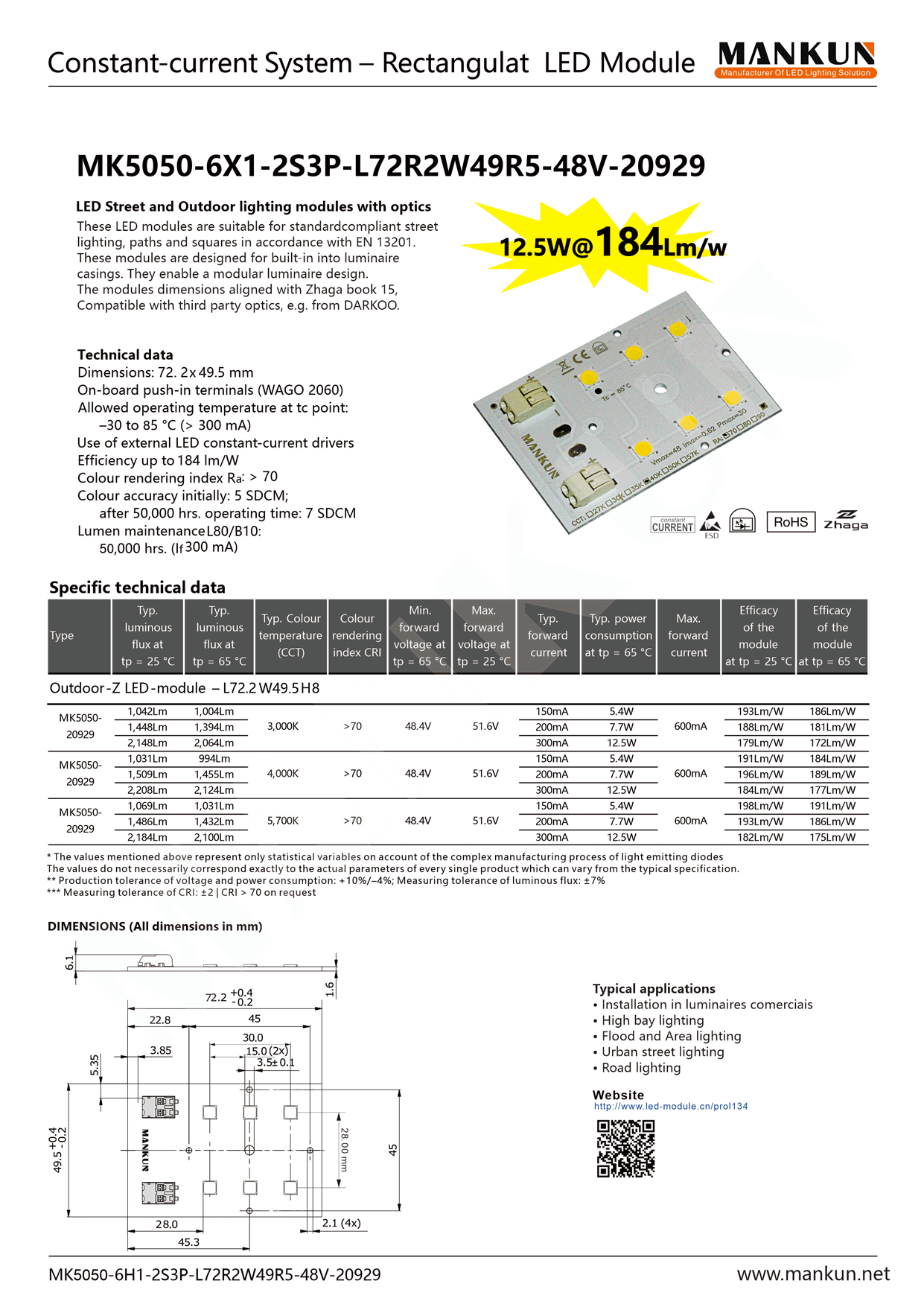 _ Module Efficacy 184 lm/W at Irated and tp = 25 ¡ãC