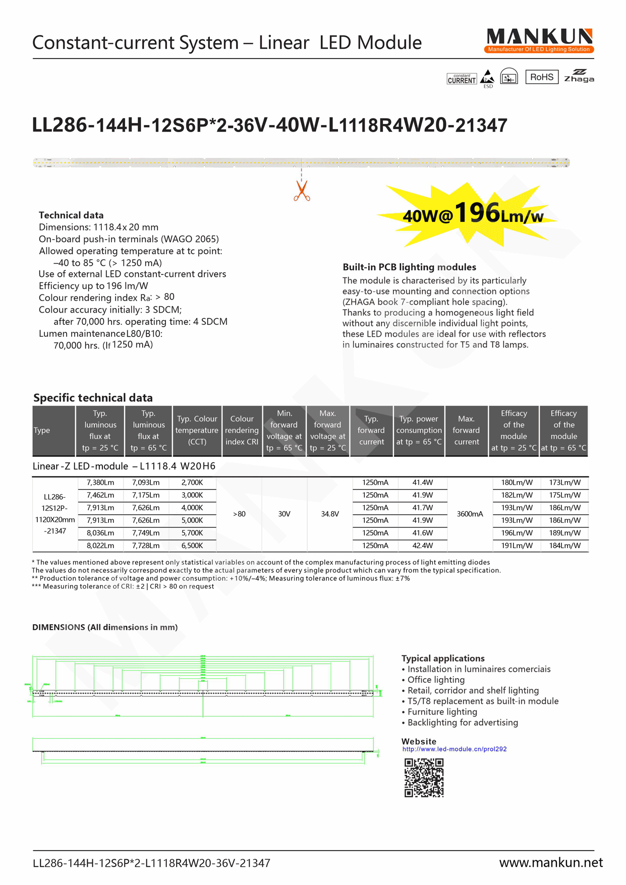 _ Module Efficacy 196 lm/W at Irated and tp = 25 ¡ãC
