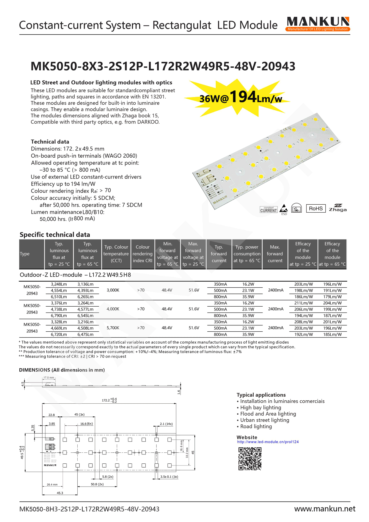 | PCB Size | 172.2mm*49.5mm*1.6mm | Luminous Efficiency | 194lm/W |